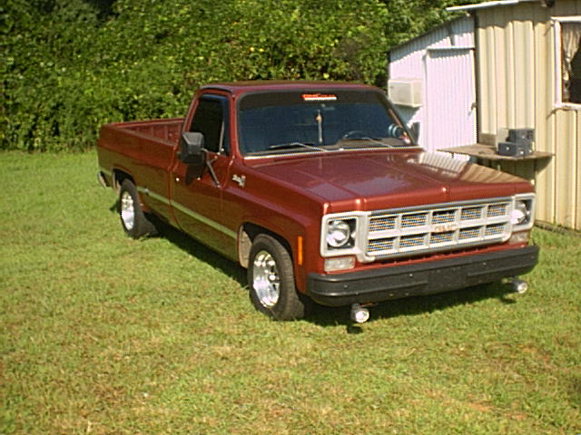 Exterior mods: Goodmark 2nd design hood, painted liscence filler, billet bowtie, clear corners, removed badges, Checkmate bedcover, Pop-lock tailgate lock, and a GM rollpan.