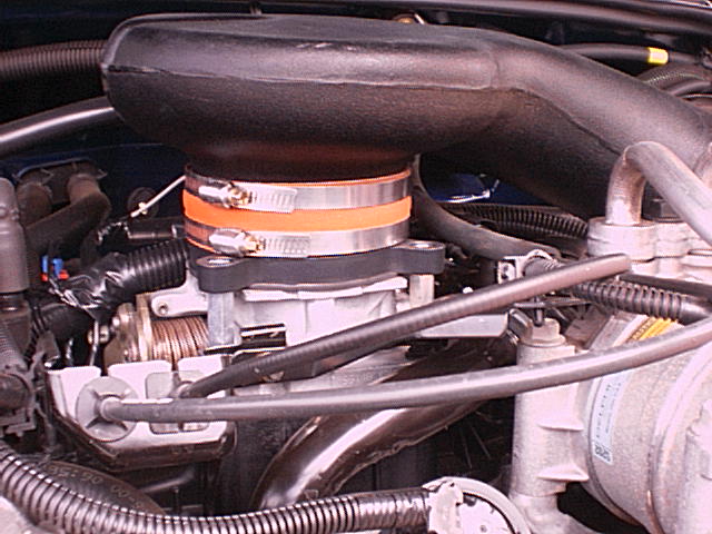 The system comes in two pecies. The upper intake tube goes from the throtle body to the mass air sensor. It also includes the air temp. sensor, which I had to enlarge the hole a little to get it to fit. |