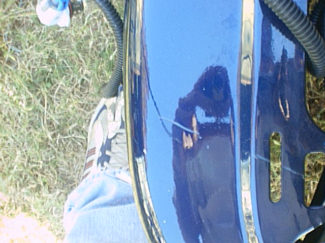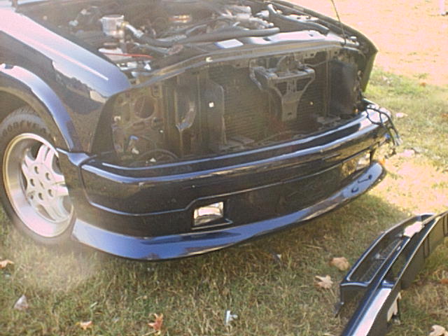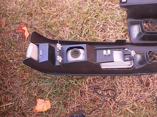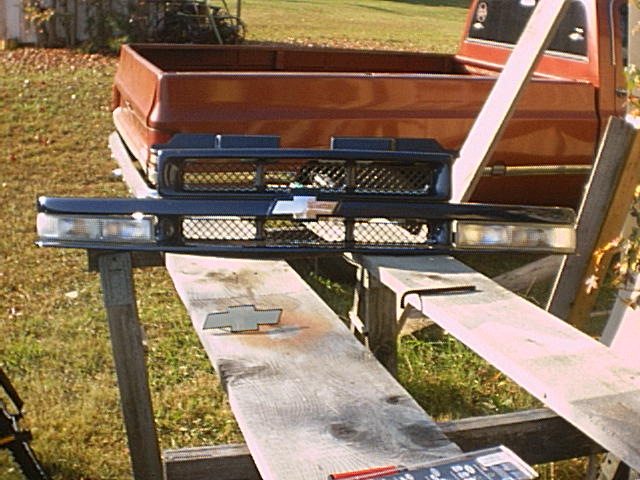 After the grill removal. I took the headlights out because it gave me more room to get to the grill and also the park/turn bulbs. there are lots of little clips on the back of the grill. There are two on each side of the hood release and three on each side around the park lights and one in the middle. Be very gentle!!!! |
